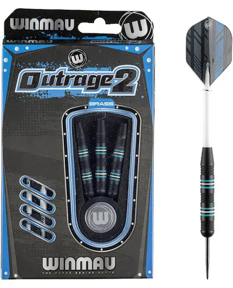 Winmau Outrage2 darts set includes: Prism Alpha standard extra thick flights Prism Force Shafts Barrel Profile: Specialist Front Profile: Round...