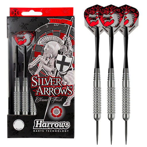 Harrows darts set The Silver Arrows range features brass barrels which are finished with silver chrome. 3 darts per set carry case included Differe...