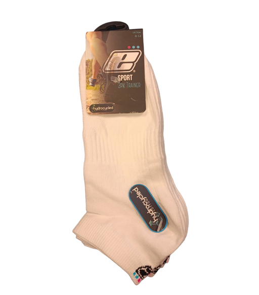 3 pack of trainer socks White Arch support grip Cotton rich Breathable mesh panel in the top of foot Various sizes available
