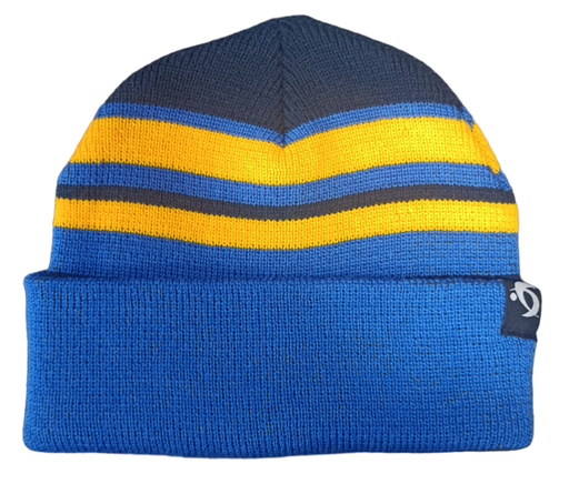 Premier Sports blue/gold hat Extra warm winter cuff hat NO bobble For custom hats get in touch: info@premiersports.ie