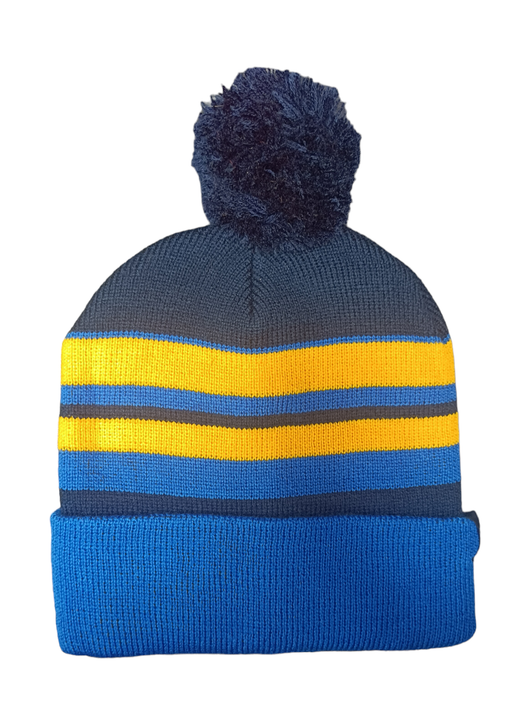 Premier Sports blue hat Extra warm winter hat BLUE/GOLD bobble For custom hats get in touch: info@premiersports.ie