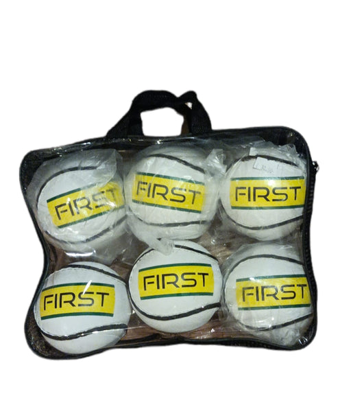 View full detailsBag of 6 Premier Sports branded First Touch sliotar Soft over sized sliotar, designed for a child's first steps into hurling and camogie! White/bl...