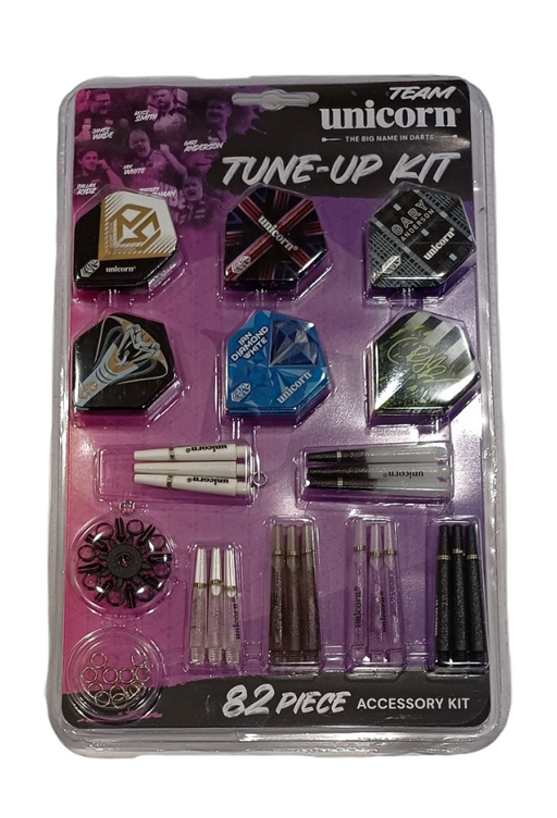 View full detailsTeam Unicorn Tune Up Kit. Contains: 6 Different Sets of Team Unicorn Flights, 18 Gripper Shafts, 8 Ozones, 8 Flight Protectors, 12 Additional Sprin...
