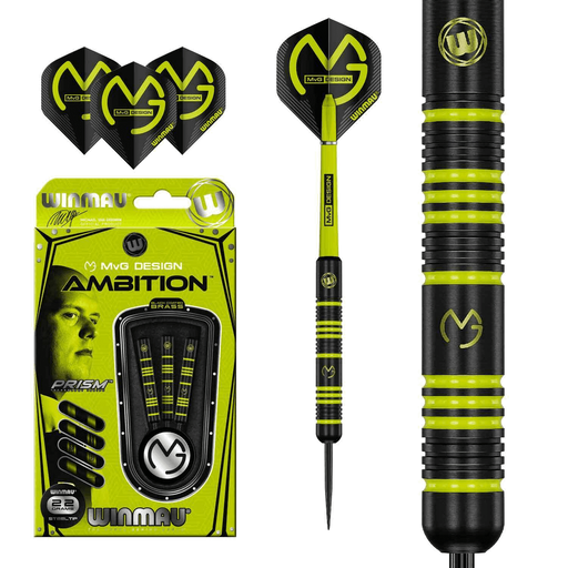 View full detailsMichael van Gerwen Winmau darts set MVG branding and colours 3 steel tip brass darts MVG mega standard flights and nylon shafts High end MVG point ...