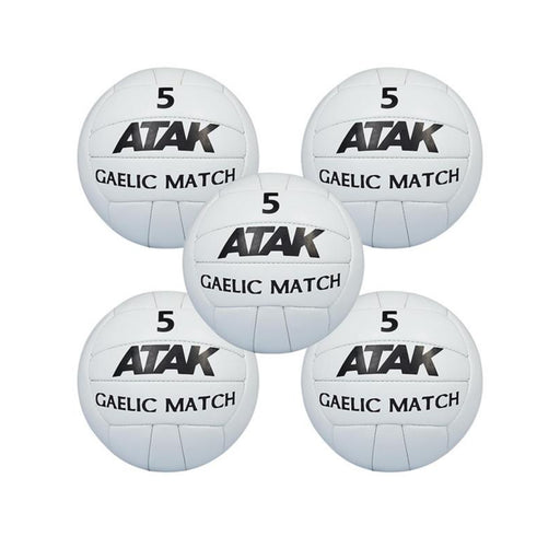 View full detailsSize 5 Match gaelic footballs 5 pack Atak branded white Balls will be delivered deflated