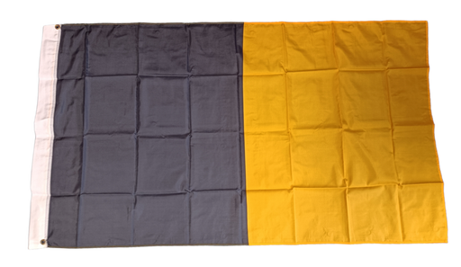 View full detailsHalf & Half Supporters Flag 5 foot x 3 foot Black/Amber Can be mounted on a pole or hung via eyelets