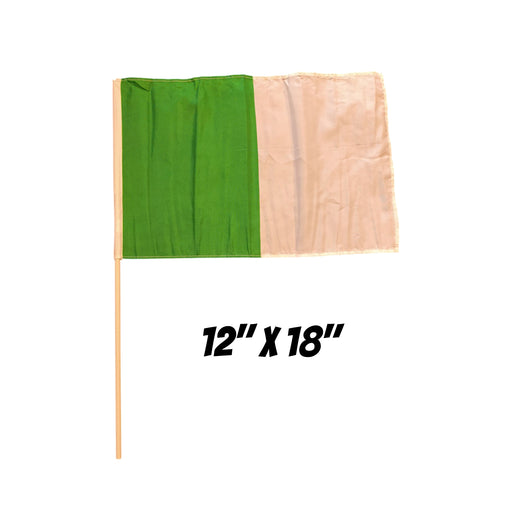 View full details12" X 18" GREEN WHITE half/half flag Comes with stick attached Flags may be sent without packaging Bulk discounts available on flags, call 0877933...