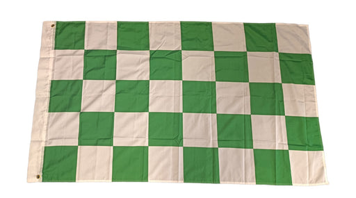 Chequered Supporters Flag 5 foot x 3 foot White & Green Can be mounted on a pole or hung via eyelets