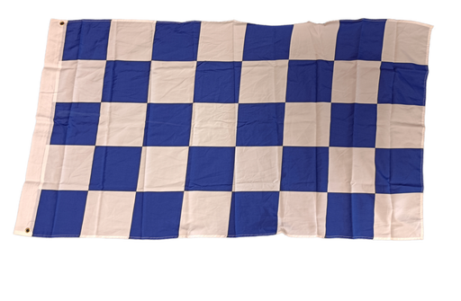 Chequered Supporters Flag 5 foot x 3 foot White & Blue Can be mounted on a pole or hung via eyelets