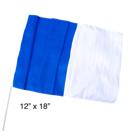 View full details12" X 18" BLUE WHITE half/half flag Comes with stick attached Flags may be sent without packaging Bulk discounts available on flags, call 08779331...