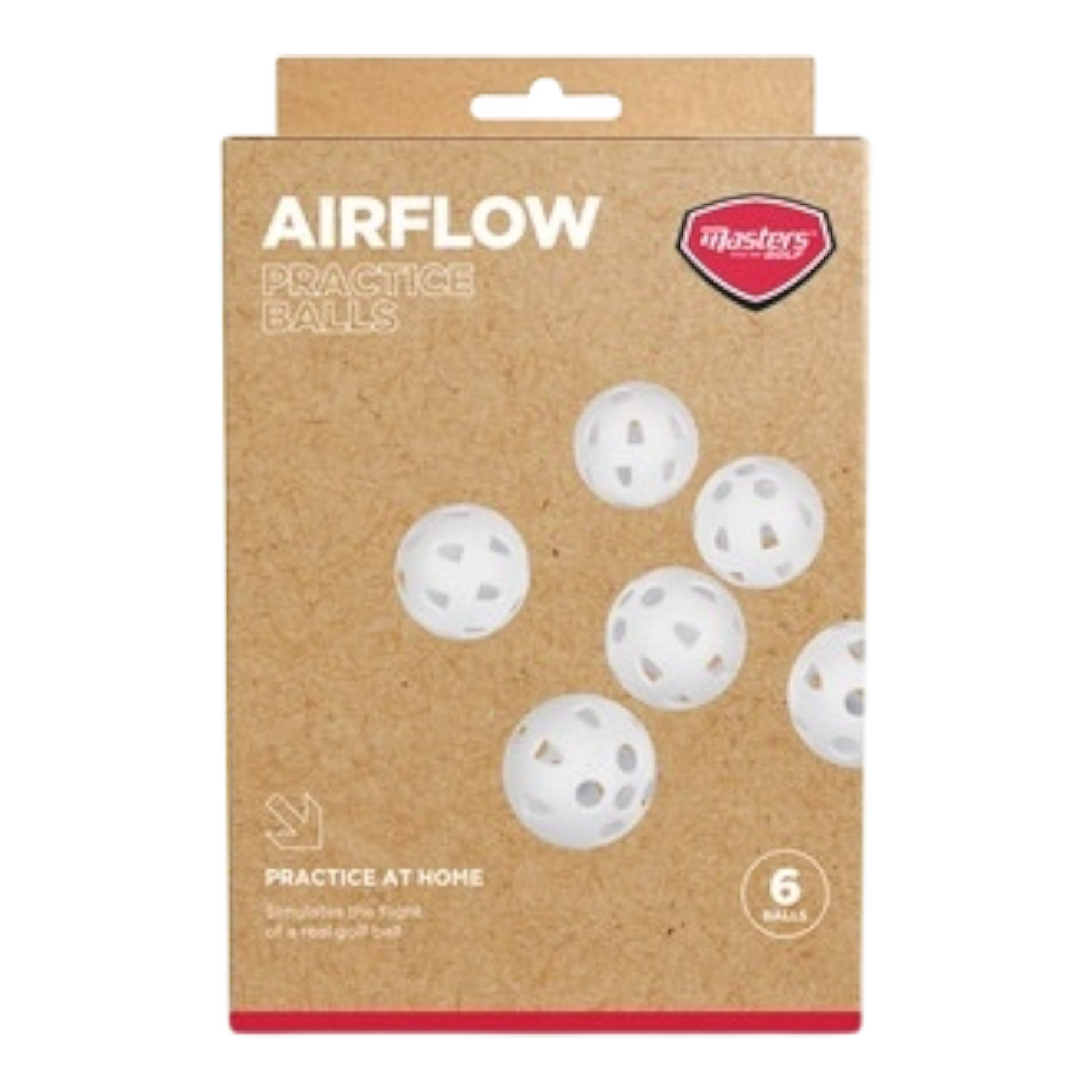 This practice ball has holes which make the ball fly true off the club and simulates the flight of a real golf ball